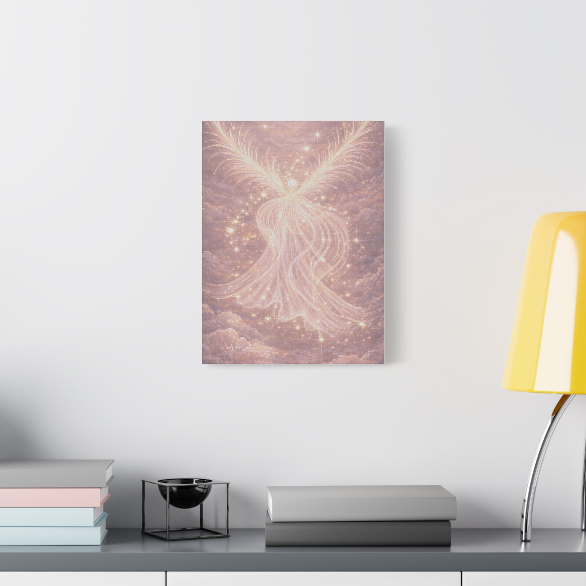 Professionally printed on premium quality canvas, this artwork carries soft, high vibrational energy with nurturing tones often associated with the heart centre. It brings a sense of calm, warmth and reassurance, making it a beautiful addition to a bedroom, healing space, meditation area or sacred corner of your home.