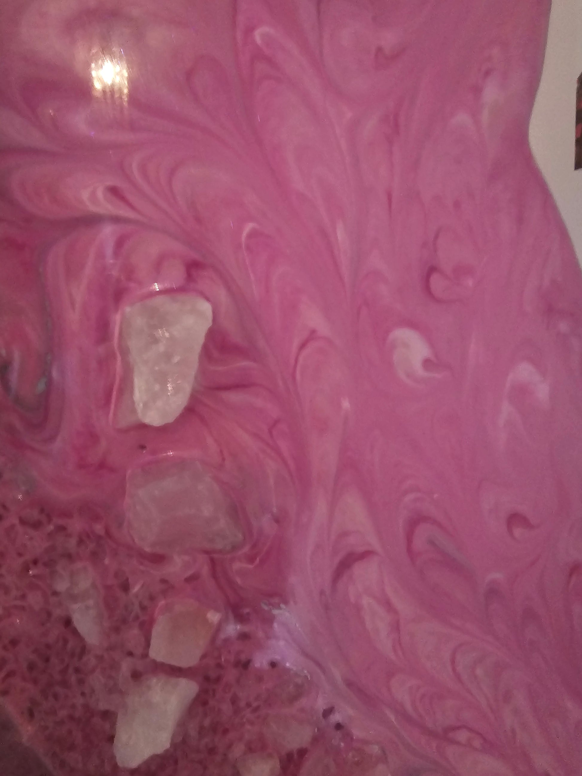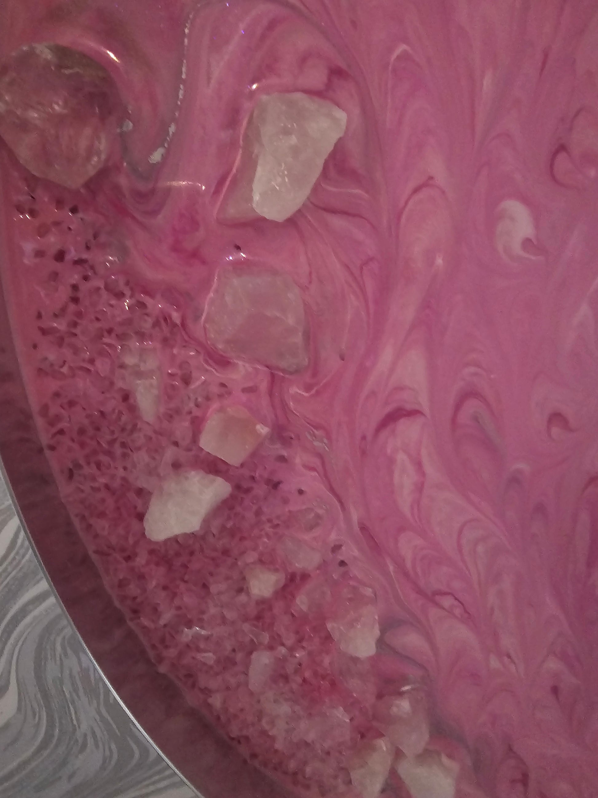 Elevate your space with the harmonious vibrations of our frequency art resin mirror, infused with the timeless wisdom and healing power of Rose Quartz and White Quartz. Embrace the beauty of these divine creations and embark on a journey of transformation and renewal."